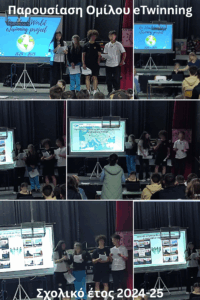 Στο πλαίσιο της διάχυσης στη σχολική κοινότητα των δράσεων όλων των προγραμμάτων και των ομίλων, που έτρεξαν τη σχολική χρονιά 24-25, έγινε η παρουσίαση τους στο αμφιθέατρο του σχολείου μας την Πέμπτη 15-05-25 στο σύνολο των μαθητών και των εκπαιδευτικών της σχολικής μας μονάδας.